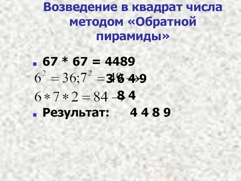 67 × 47 = 3149; 6 × 4 + 7 = 31; 7 × 7 = 49