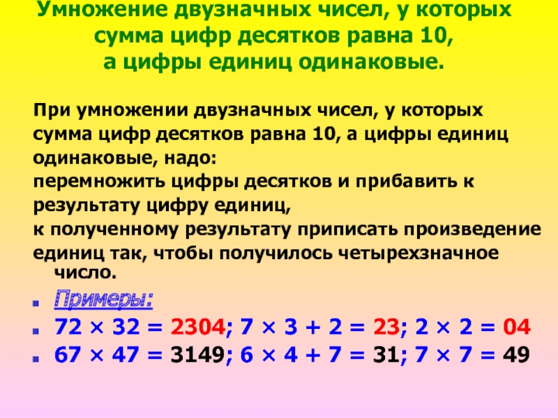 перемножить цифры десятков и прибавить к