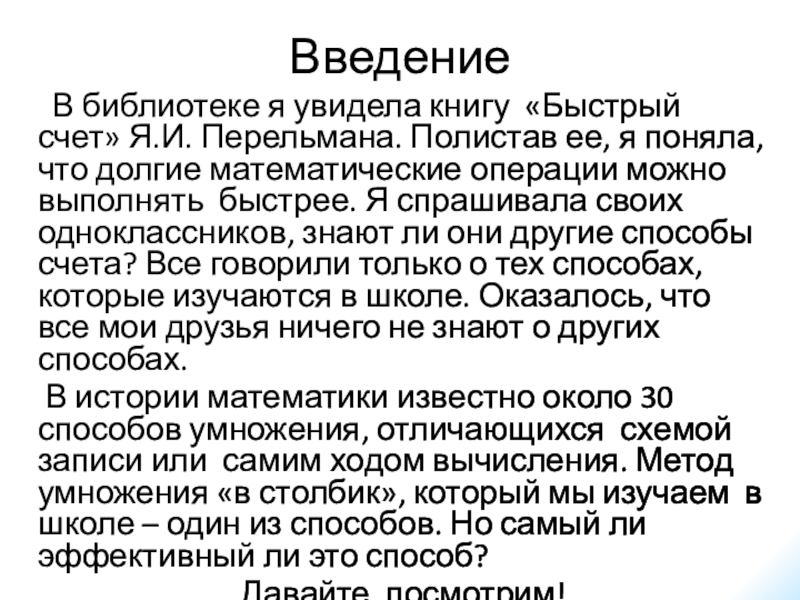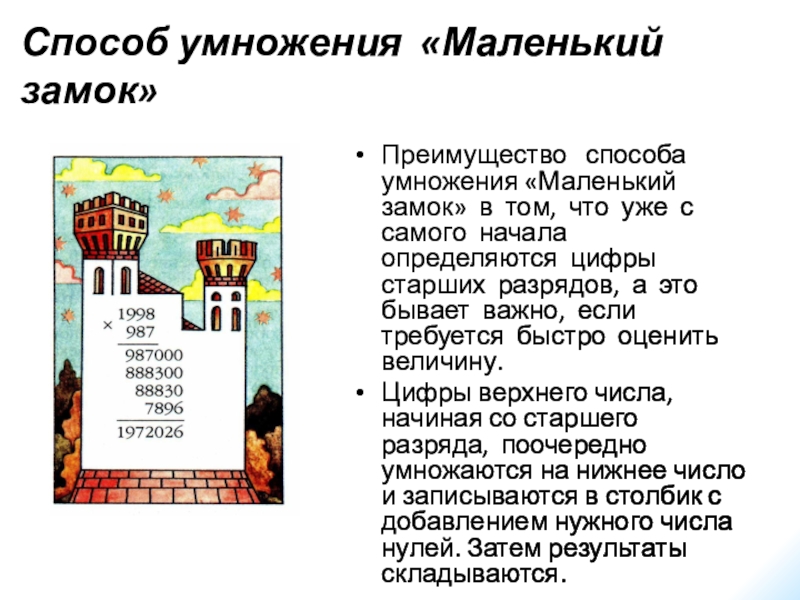 умножение начинаем со старшего разряда, и записываем неполные произведения как раз над множимым, поразрядно. При этом сразу виден старший разряд полного произведения и, кроме того, исключается пропуск какой-либо цифры. Знак умножения еще не был известен, поэтому между множителями оставляли небольшое расстояние