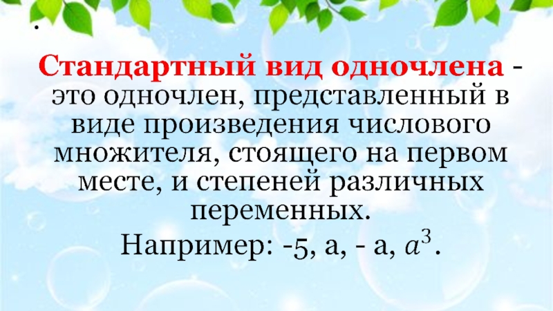 Презентация, доклад Одночлен. Стандартный вид одночлена (7 класс)