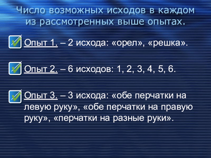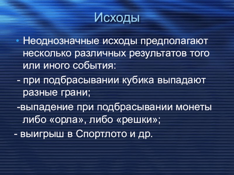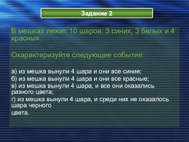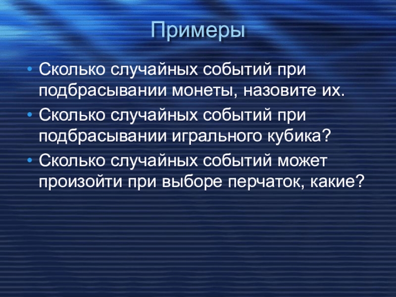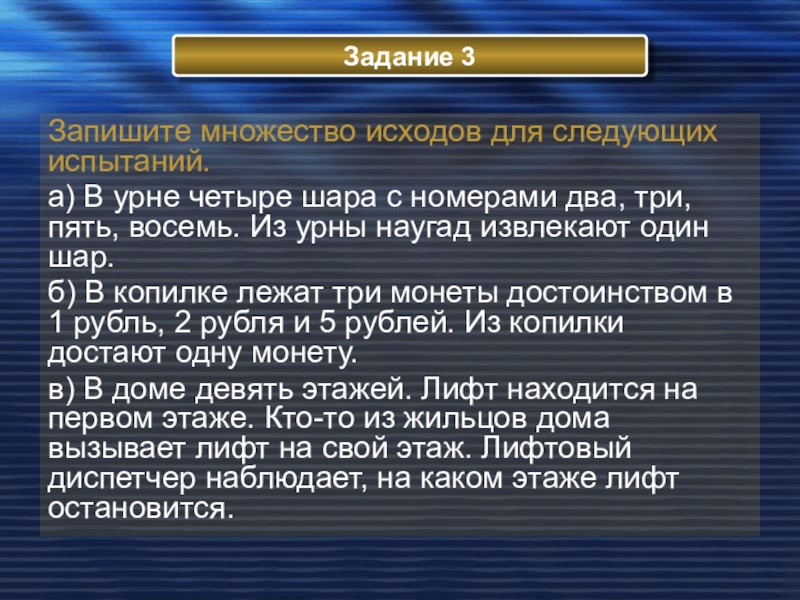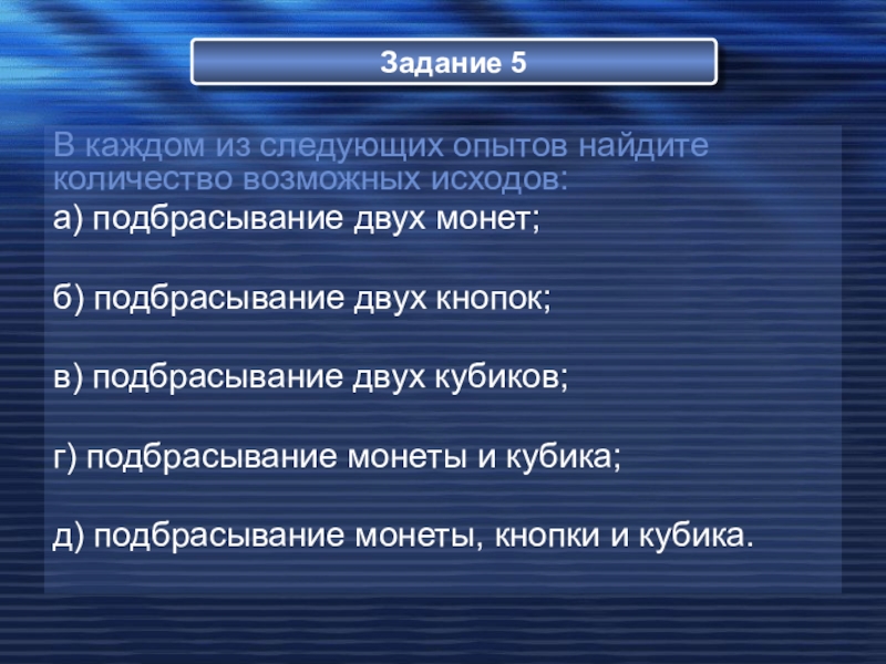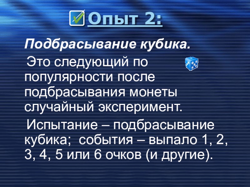 2. ПРИ ПОДБРАСЫВАНИИ КУБИКА ВЫПАДАЕТ 7 ОЧКОВ.