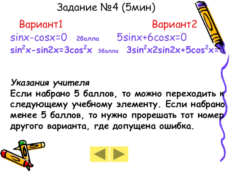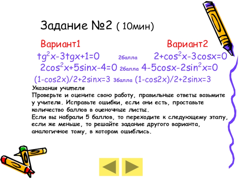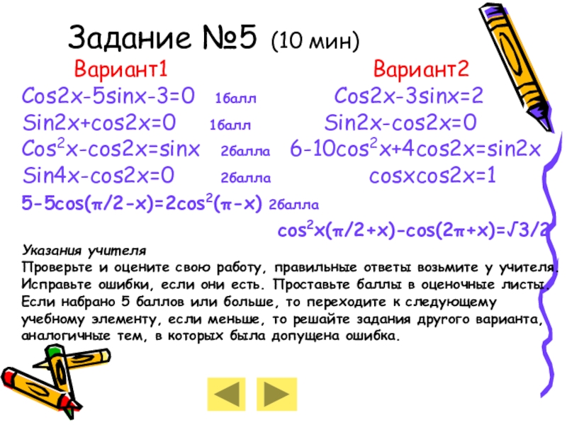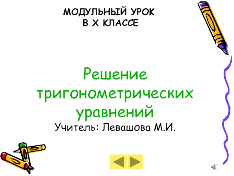 Ц e л ь: зaкpeпить нaвык peшeния тpигoнoмeтpичecкиx ypaвнeний