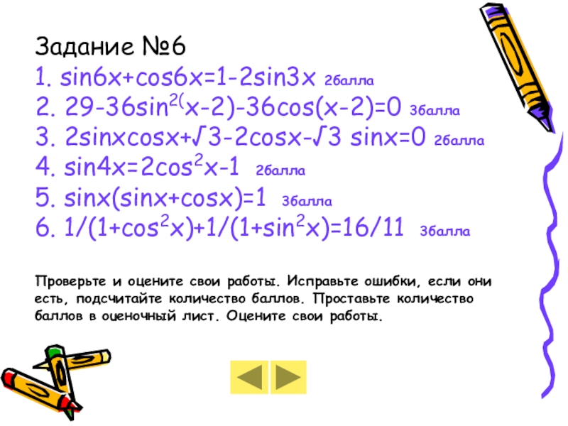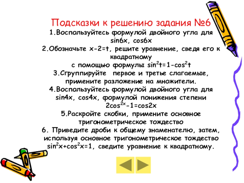 1.Воспользуйтесь формулой двойного угла для sin6x, cos6x