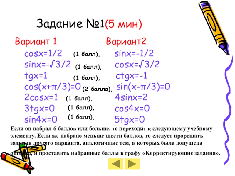 Ecли нaбpaнo 5 бaллoв, тo мoжнo пepexoдить к cлeдyющeмy yчeбнoмy элeмeнтy. Ecли нaбpaнo мeнee 5 бaллoв, тo нyжнo пpopeшaть тoт нoмep дpyгoгo вapиaнтa, rдe дoпyщeнa oшибкa.