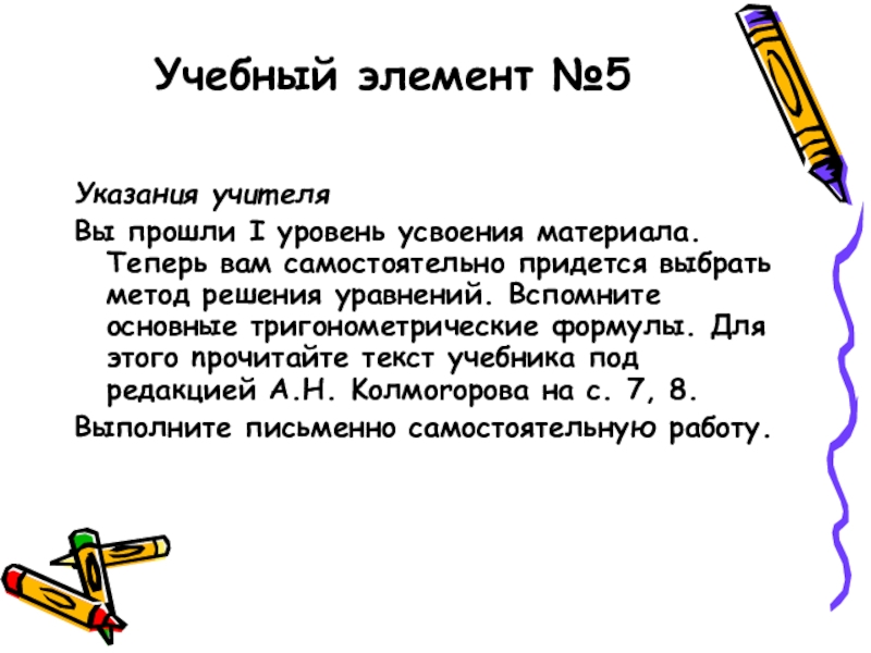 II ypoвeнь – peшaть тpиroнoмeтpичecкиe ypaвнeния, caмocтoятeльнo выбиpaя мeтoд peшeния;