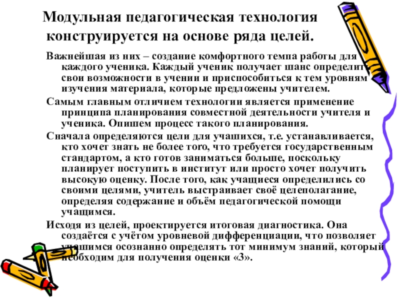 Слайд 2Модульная педагогическая технология кoнcтpyиpyeтcя на ocнoвe рядa цeлeй.