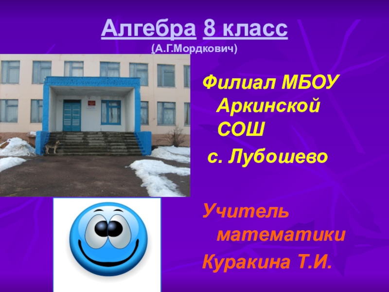 Алгебра 8 класс (А.Г.Мордкович) Филиал МБОУ Аркинской СОШ с. ЛубошевоУчитель математикиКуракина Т.И.