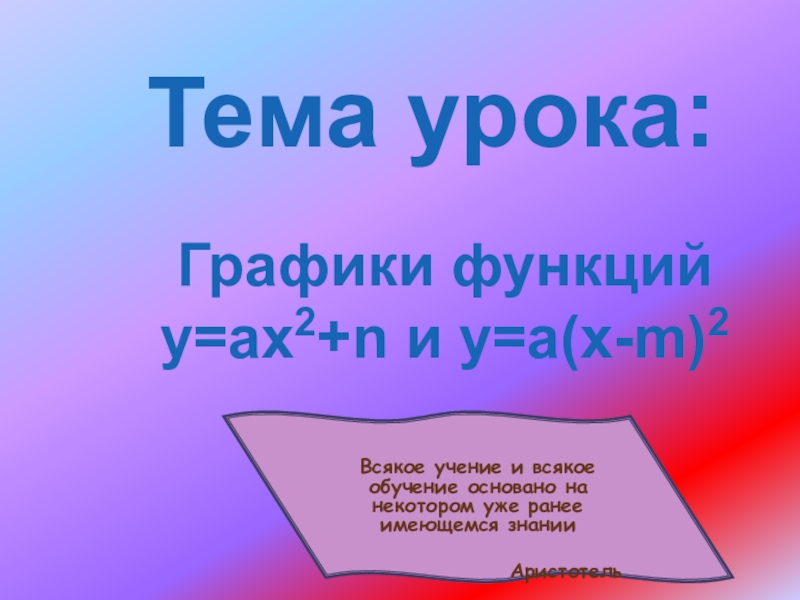 Графики функцийу=ах2+n и у=а(х-m)2Тема урока: Всякое учение и всякое обучение основано на некотором уже ранее имеющемся знании Аристотель