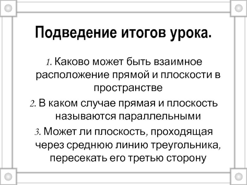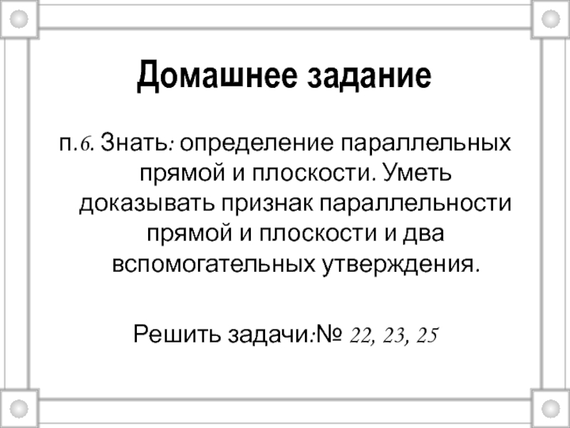 Параллельность прямой и плоскости в пространстве