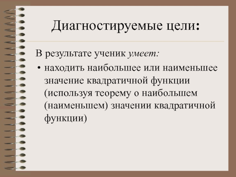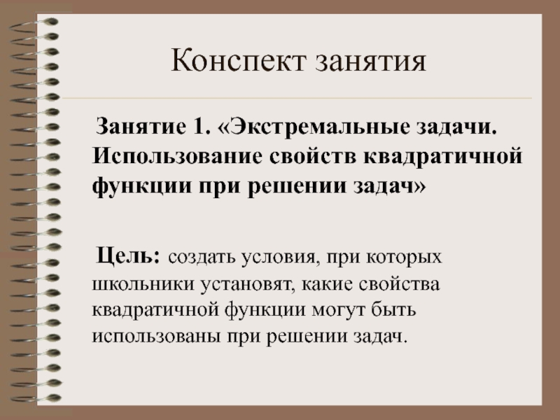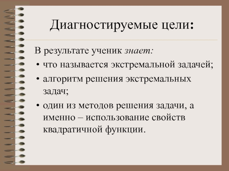 понятии экстремальной задачи, об алгоритме её решения; Выделить свойства квадратичной функции, которые могут быть использованы при решении задач.