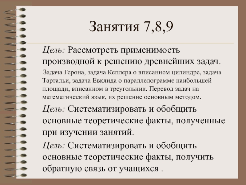 Цель: Рассмотреть применимость производной к решению древнейших задач.