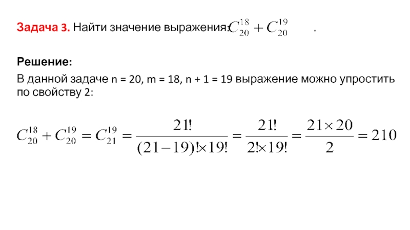В данной задаче n = 20, m = 18, n + 1 = 19 выражение можно упростить по свойству 2: