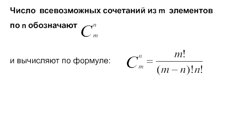 Слайд 8Число всевозможных сочетаний из m элементов по n обозначают