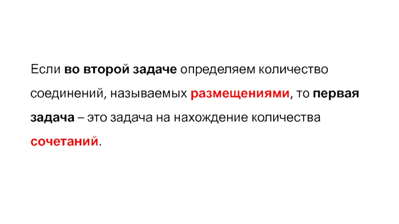 Слайд 5Если во второй задаче определяем количество соединений, называемых размещениями, то первая