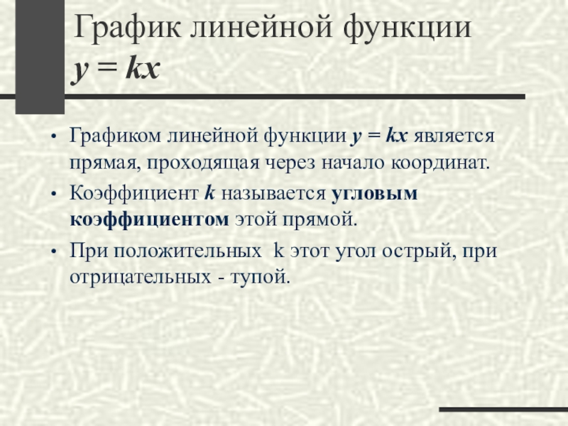 Слайд 9График линейной функции y = kx