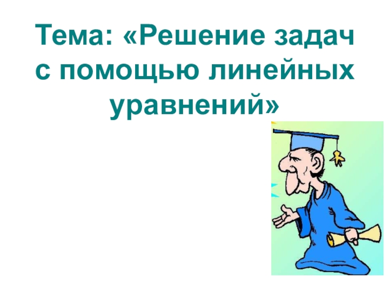 Слайд 2Тема: «Решение задач с помощью линейных уравнений»