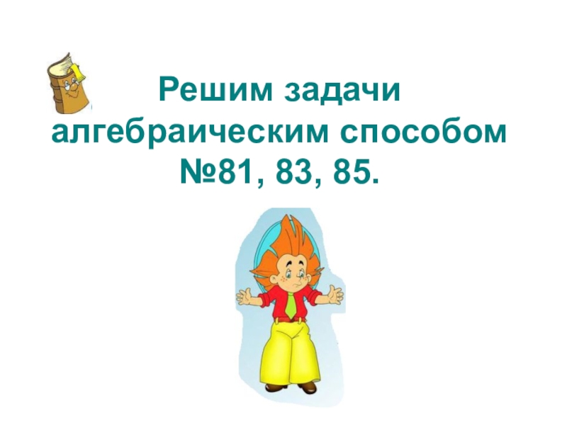 Слайд 11Решим задачи алгебраическим способом №81, 83, 85.