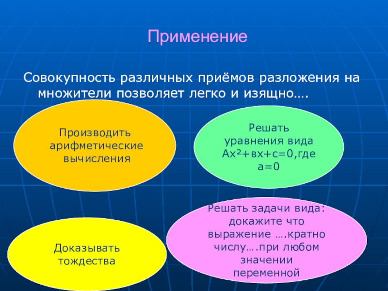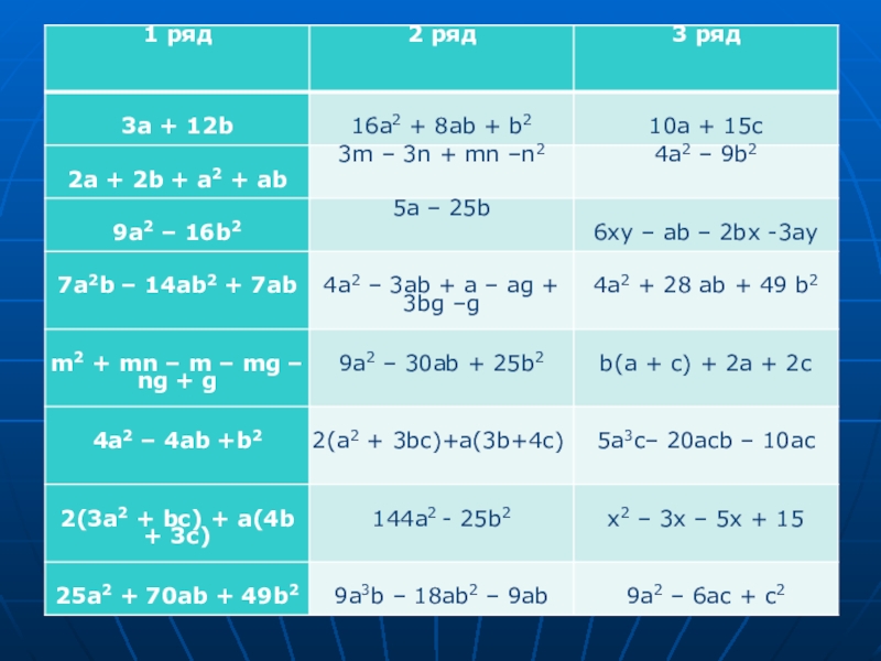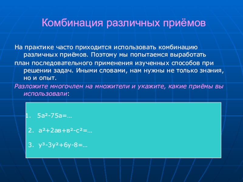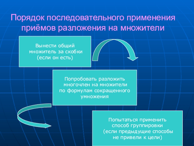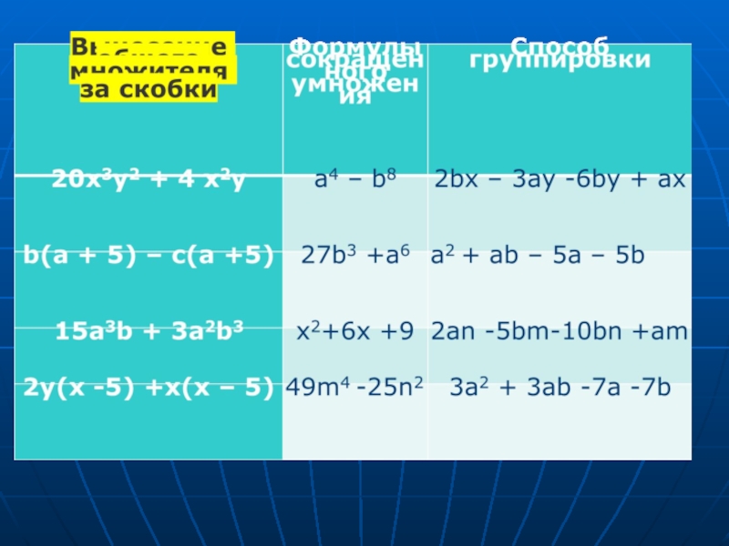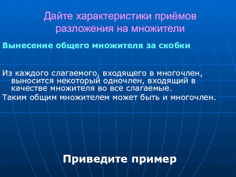 Дайте характеристики приёмов разложения на множители