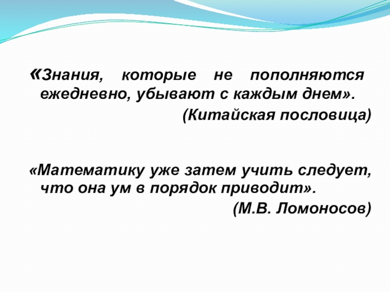 «Знания, которые не пополняются ежедневно, убывают с каждым днем».(Китайская пословица)   «Математику