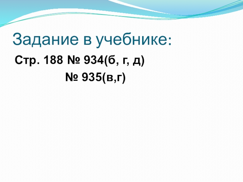 Задание в учебнике:Стр. 188 № 934(б, г, д)        № 935(в,г)