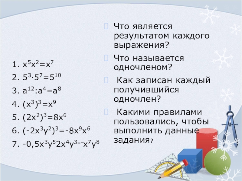 Слайд 31. x5x2=x7
