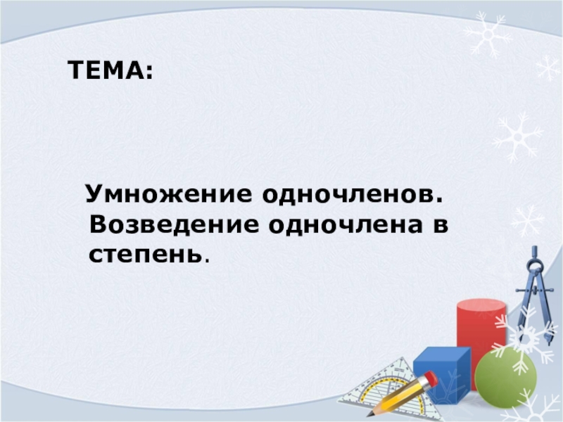 Умножение одночленов. Возведение одночлена в степень.
