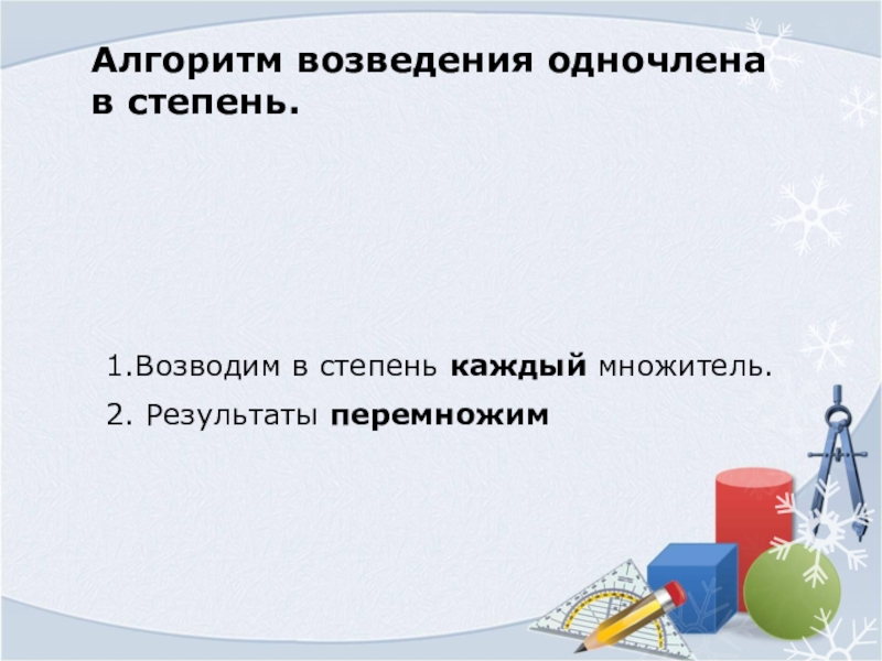 1.Возводим в степень___________ множитель.