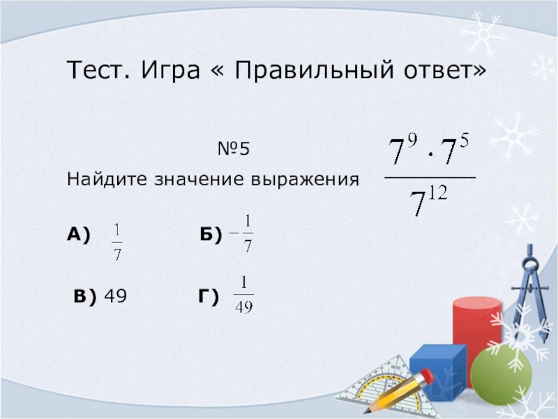 Слайд 21Тест. Игра « Правильный ответ»
