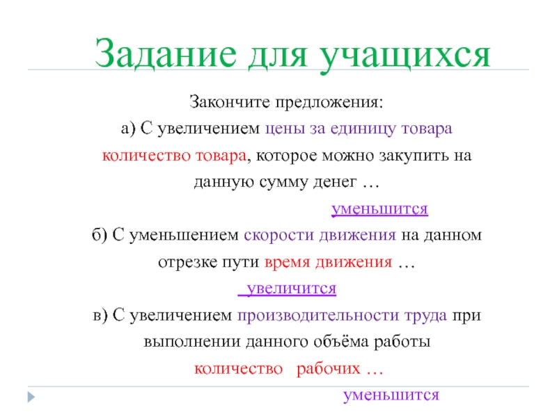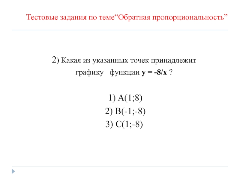 Тестовые задания по теме“Обратная пропорциональность”