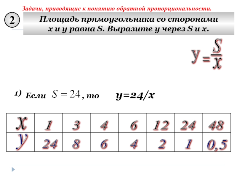 Задачи, приводящие к понятию обратной пропорциональности.