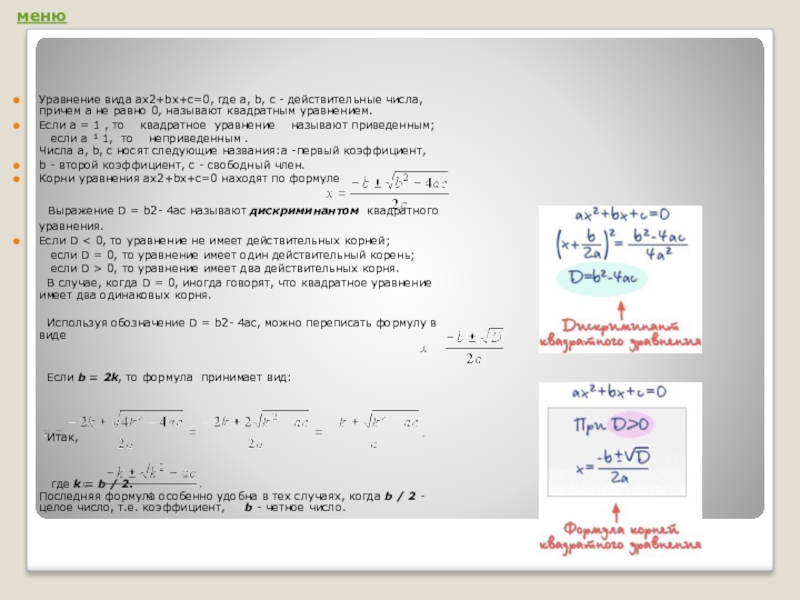 Если a = 1 , то квадратное уравнение называют приведенным;