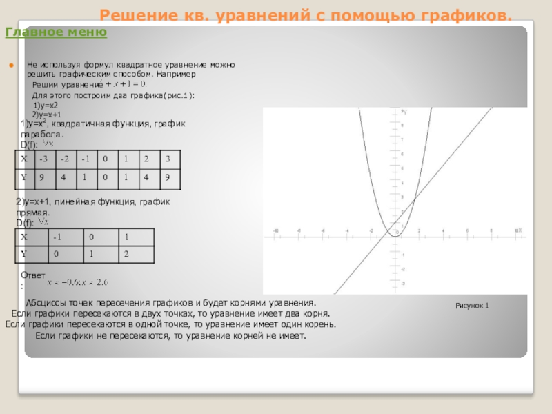 Не используя формул квадратное уравнение можно решить графическим способом. Например