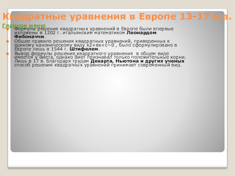 Задачи на квадратные уравнения встречаются уже в 499 г.