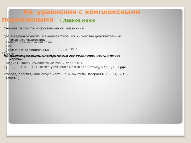Задача1. Найти комплексные корни если а=-1