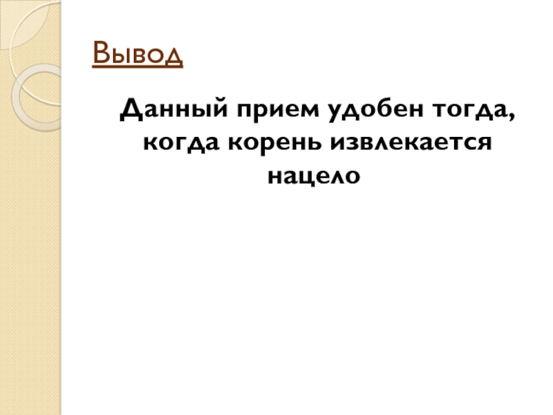 Данный прием удобен тогда, когда корень извлекается нацело.