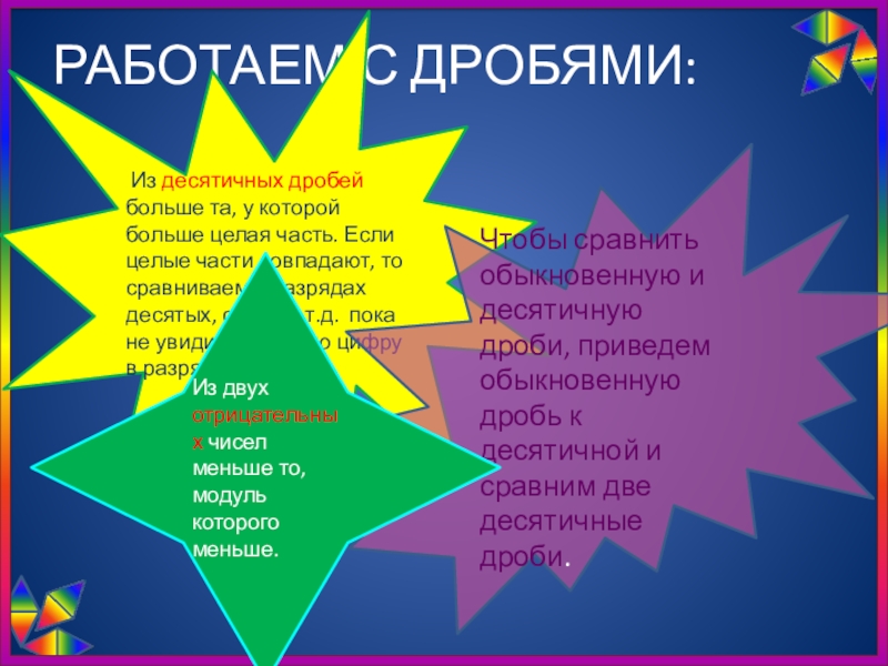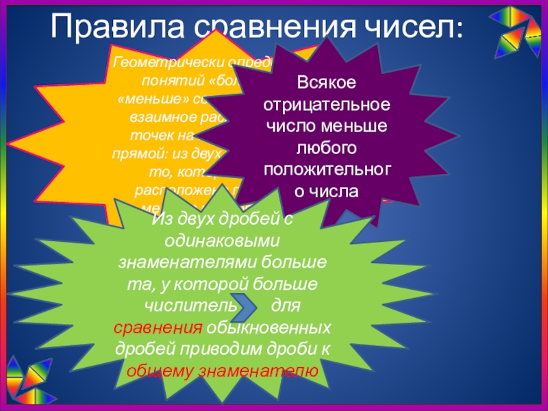 Из двух дробей с одинаковыми знаменателями больше та, у которой больше числитель для сравнения обыкновенных дробей приводим дроби к общему знаменателю