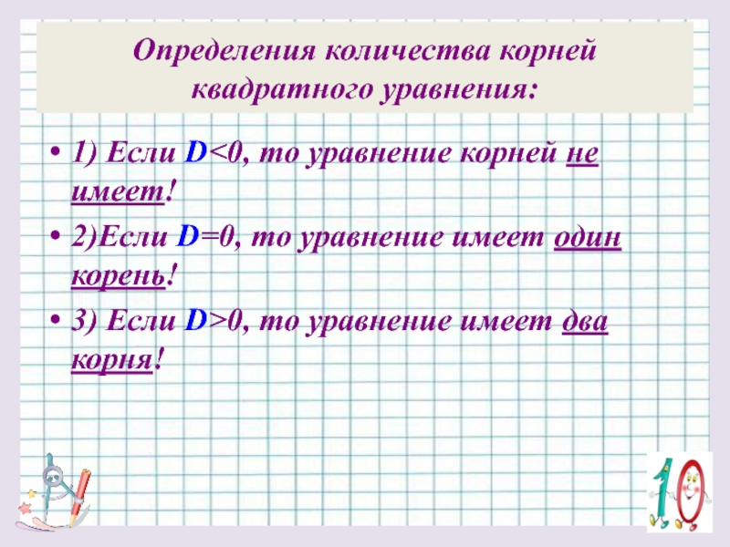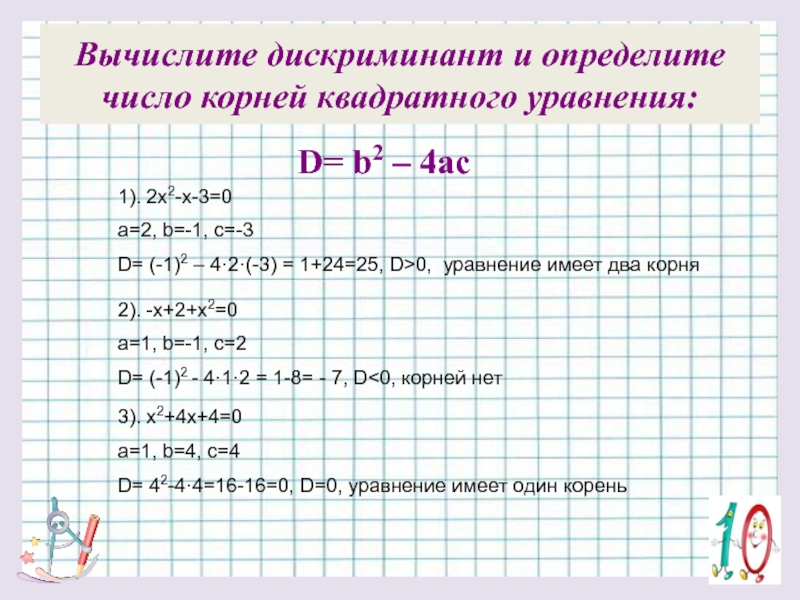 D= (-1)2 - 4·1·2 = 1-8= - 7, D<0, корней нет