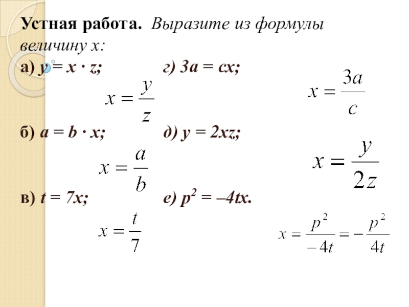 б) а = b · x; д) y = 2xz;