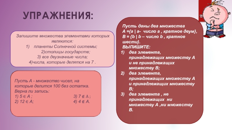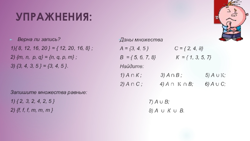 Пусть даны два множества А ={a | a- число а , кратное двум},