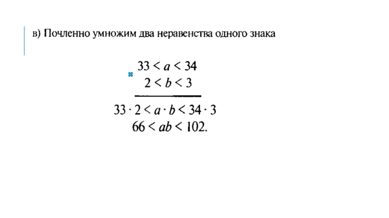 ТЕОРЕМА 8 Если почленно перемножить верные неравенства одного знака, левые и правые части которых – положительные числа,