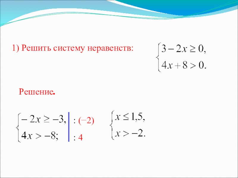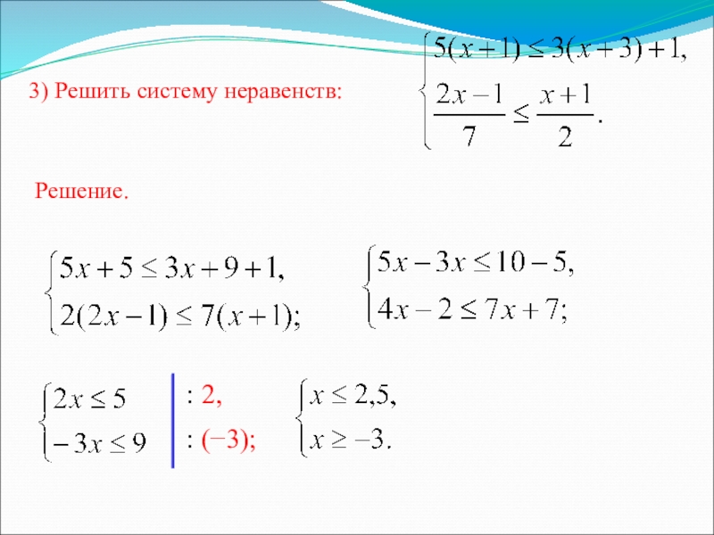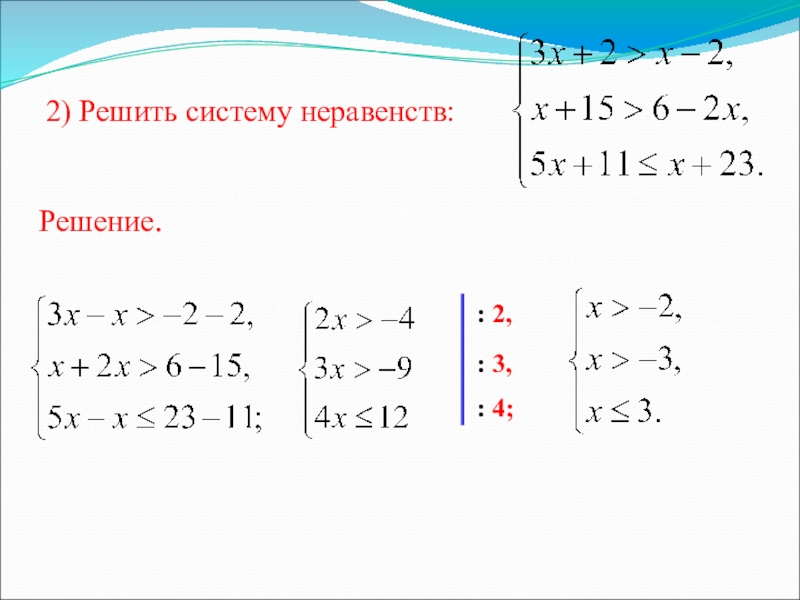 2) изобразить решение каждого неравенства данной системы