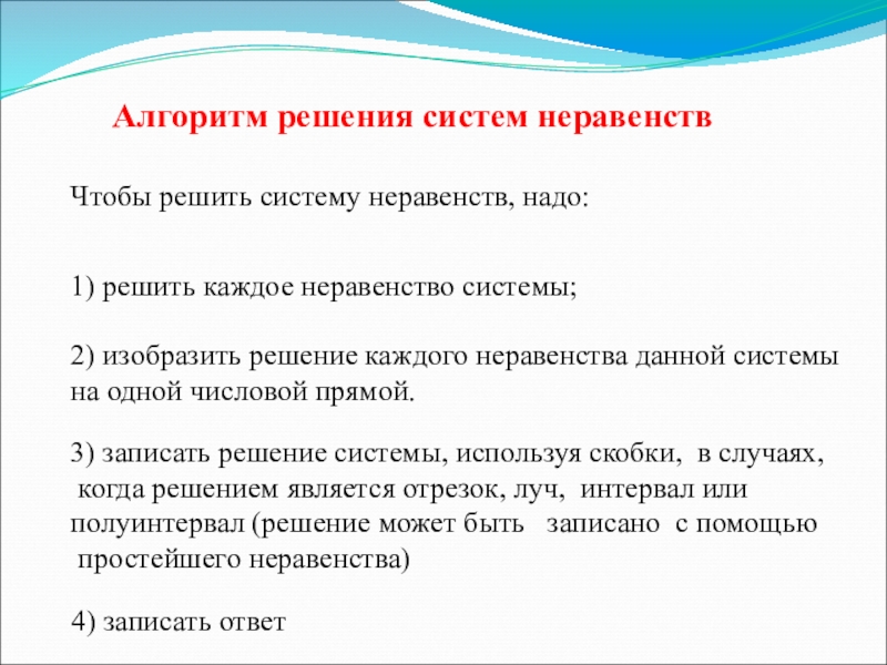 когда решением является отрезок, луч, интервал или