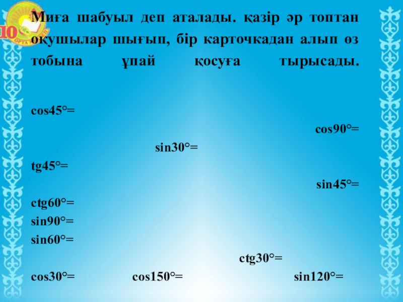 Слайд 1Тригонометриялық функциялардың қасиеттері