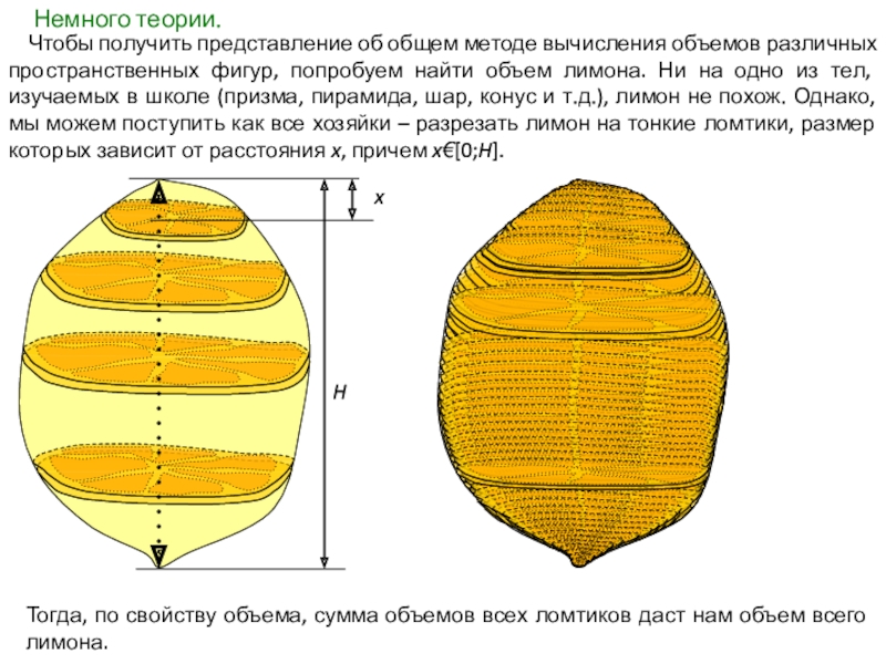 Тогда, по свойству объема, сумма объемов всех ломтиков даст нам объем всего лимона.