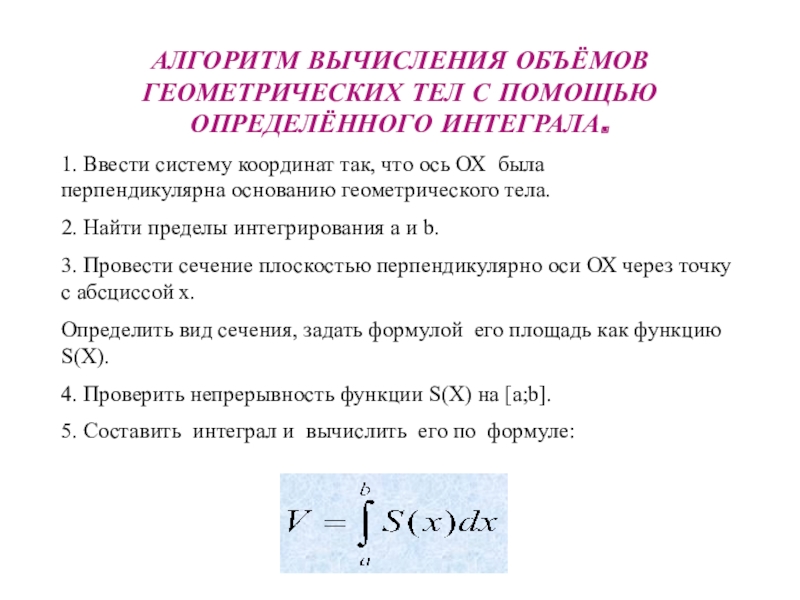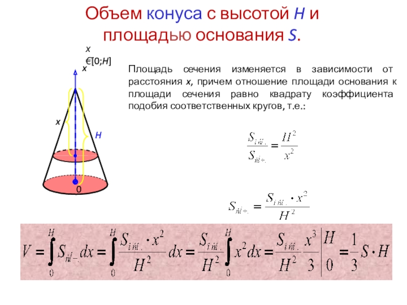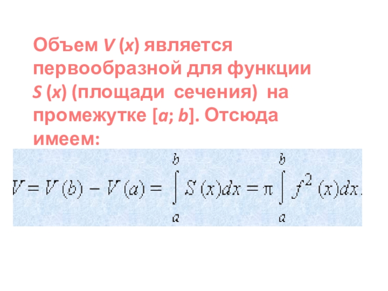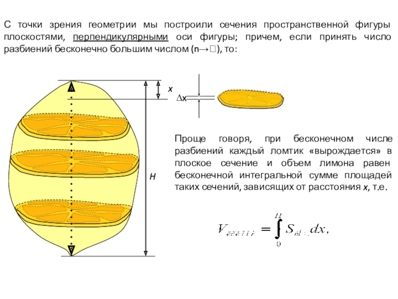 Проще говоря, при бесконечном числе разбиений каждый ломтик «вырождается» в плоское сечение и объем лимона равен бесконечной интегральной сумме площадей таких сечений, зависящих от расстояния x, т.е.