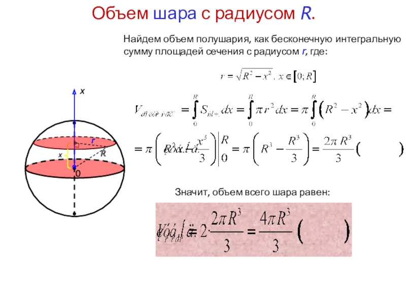 Значит, объем всего шара равен: