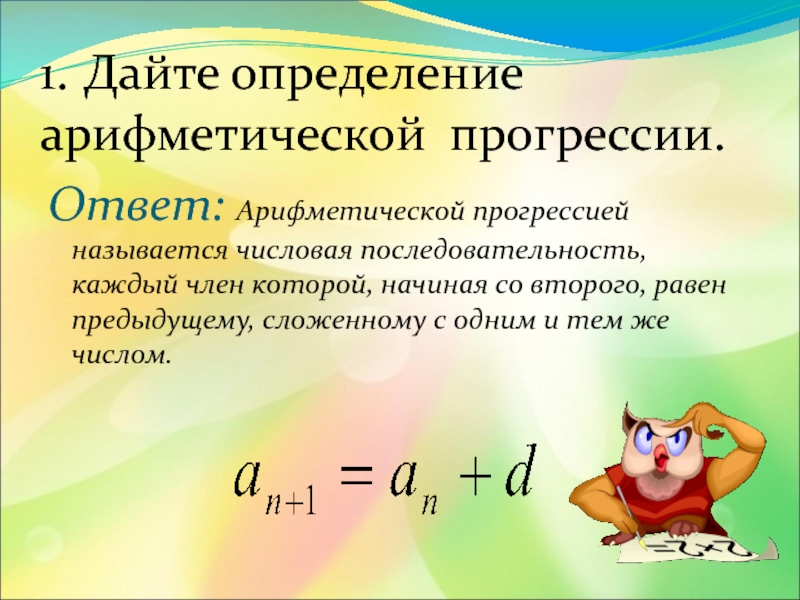 2) Назовите её первый член и разность?