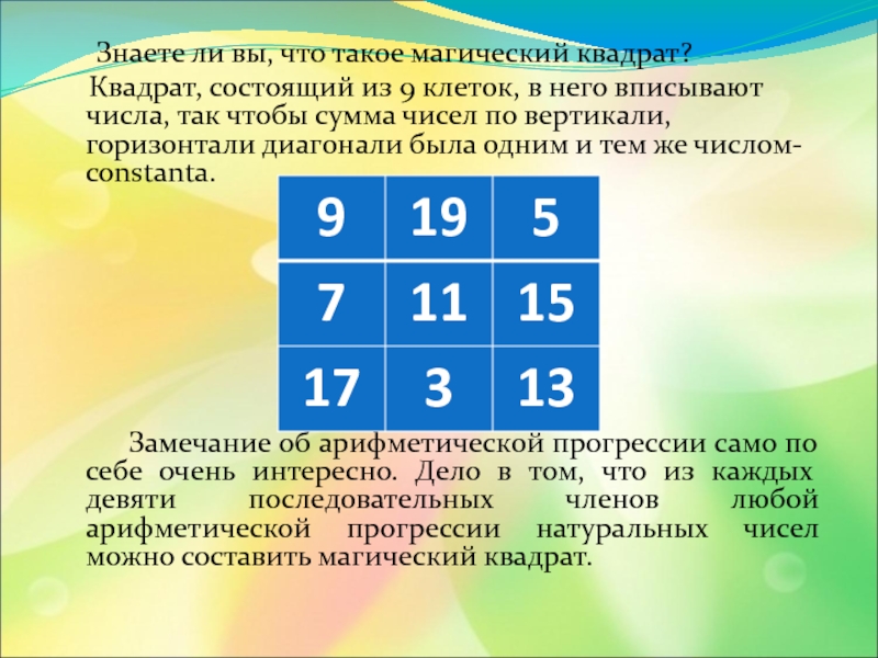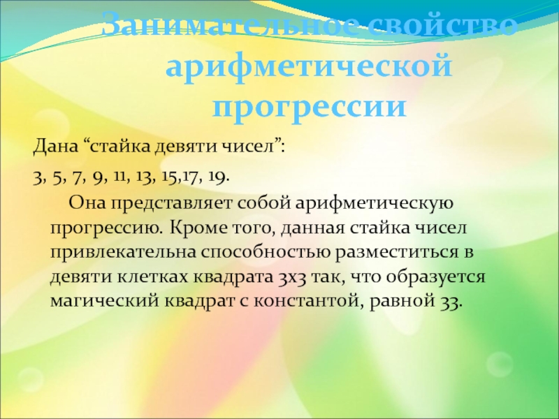 4) Продолжите её ещё тремя числами, которые вместе с данными образовали бы арифметическую прогрессию.