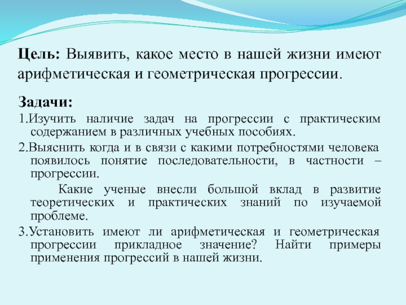 3.Установить имеют ли арифметическая и геометрическая прогрессии прикладное значение? Найти примеры применения прогрессий в нашей жизни.