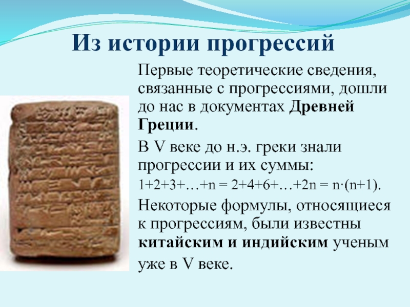 2.Выяснить когда и в связи с какими потребностями человека появилось понятие последовательности, в частности –прогрессии.